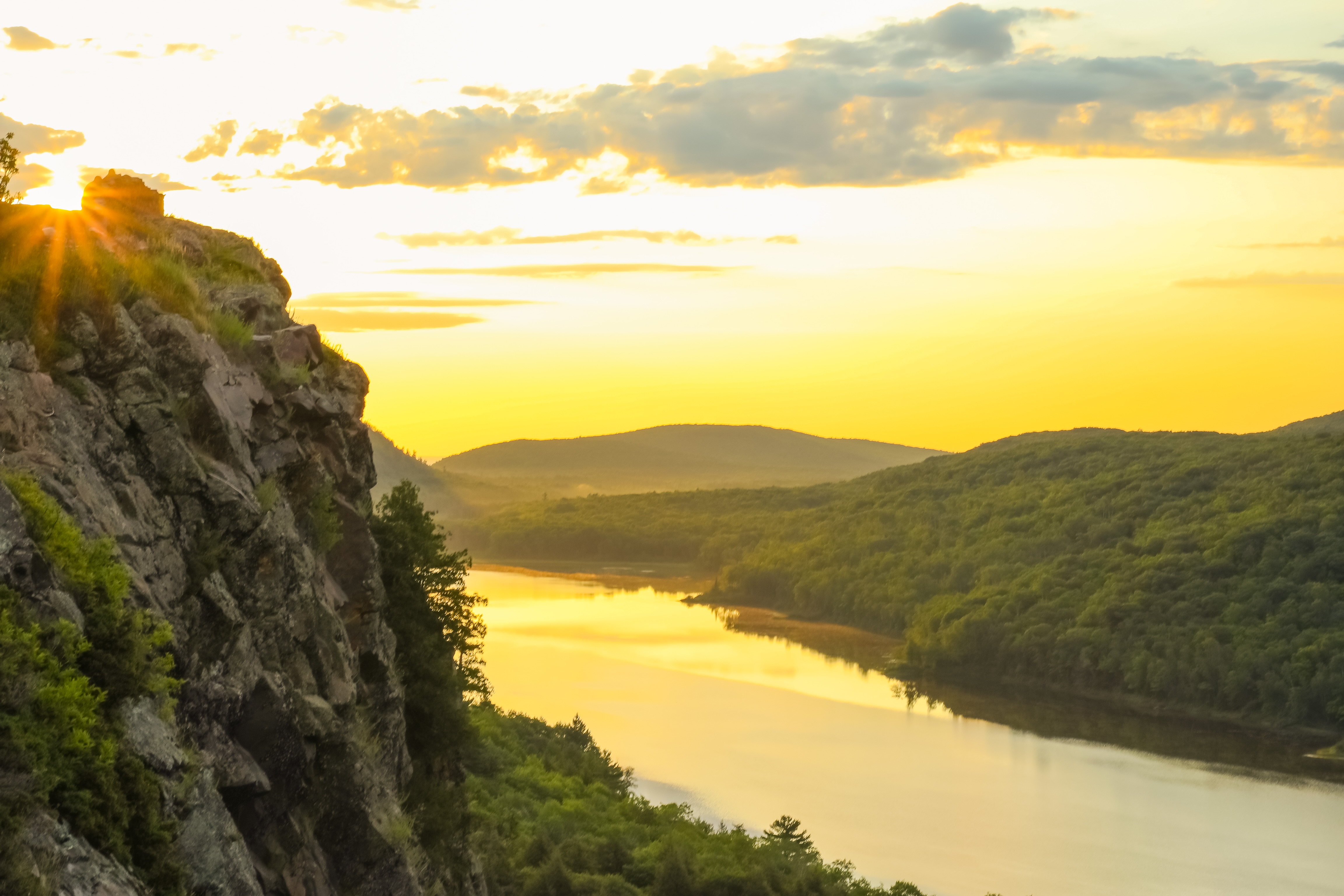 A serene sunrise over Lake of the Clouds in Michigan’s Upper Peninsula.