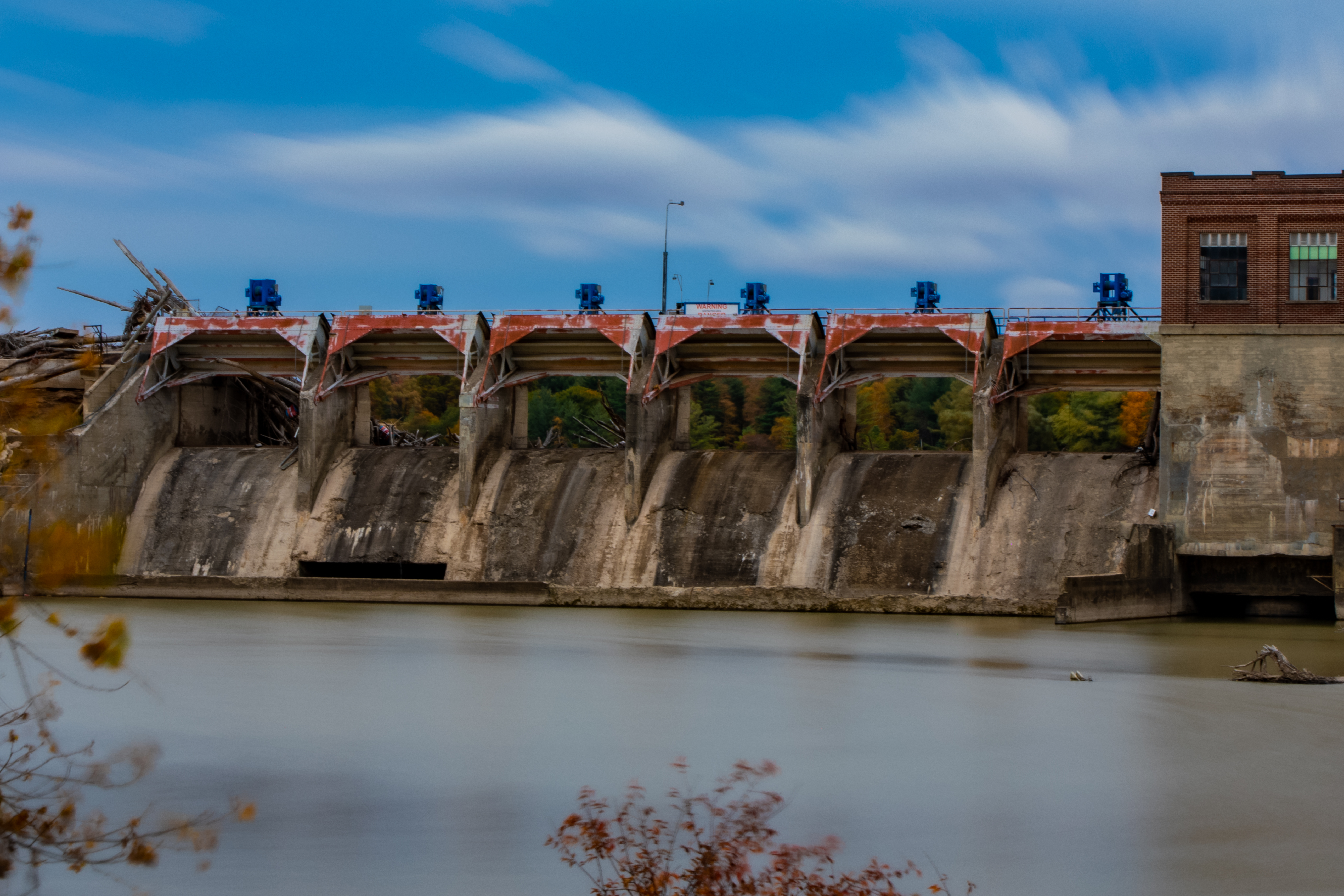 The Sanford dam, party to much destruction after its failure in the spring of 2020, sits dormant and unattended, Sanford, MI.